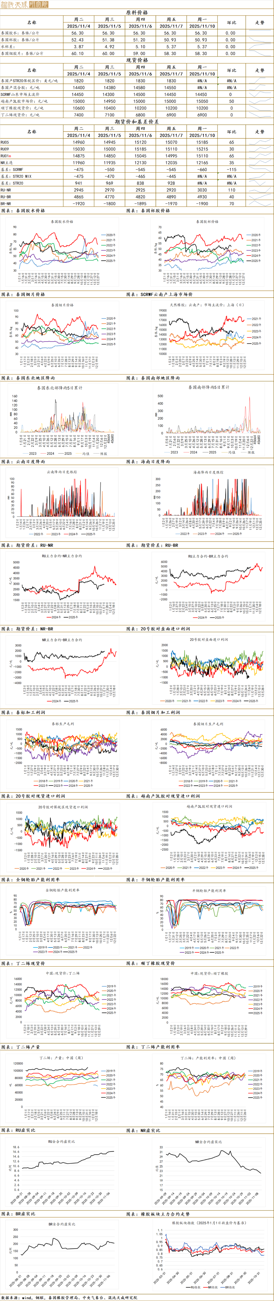 2.机构消息:QinRex据中国海关总署11月7日公布的数据显示,2025年10月中国进口天然及合成橡胶(含胶乳)合计66.7万吨,较2024年同期的65.9万吨增加1.2%。(海关总署)