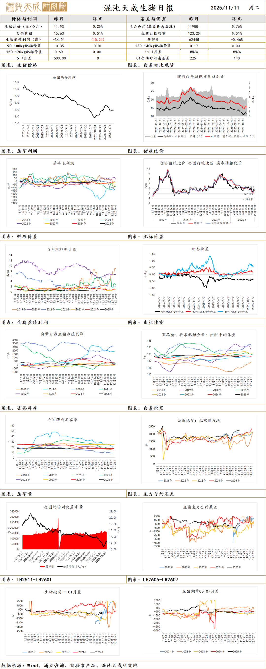 现货方面,昨日现货报价11.93元/kg,环比+0.25%;LH2601主力合约报价11955元/吨,环比+0.76%。