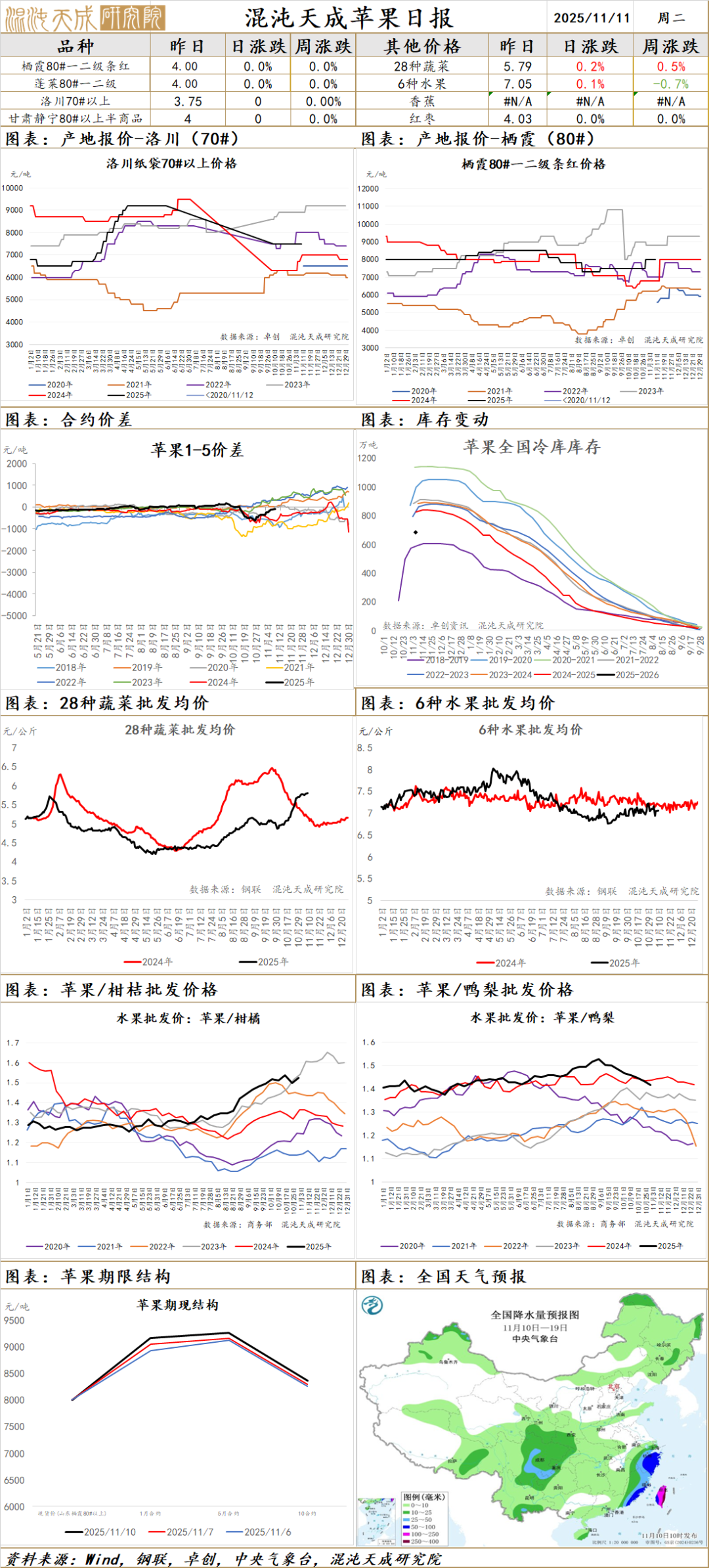 苹果:山东产区库存苹果晚熟纸袋富士收购进入尾期,当前主要是收购市场收购为主,扎点收购的基本结束,山东产区中小果开始出库,主要为外贸商采购;陕西产区主流价格稳定,库外成交基本结束,冷库逐渐开始包装出库,库内果农货成交价格略高于库外收购价;目前处于供应端交易进入尾声,第三方咨询机构公布第一期入库量均低于700万吨,由于今年下树入库有所推迟,产区本周仍在入库,市场分歧较大,短期震荡,近期主要关注入库情况。
