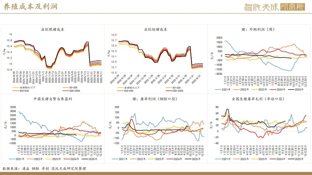 从成本角度看,标猪出栏成本下探至11.94元/kg-12.15元/kg的区间,饲料原料价格下跌以及规模猪场的效率不断提升,至使行业完全成本线不断下移至12元/kg附近。据了解,目前许多规模企业现金流成本在11.5元/kg附近,当下猪价已经亏损现金流。而牧原等头部企业的现金流成本则在11元/kg下方,行业将进入比拼现金流成本的阶段。