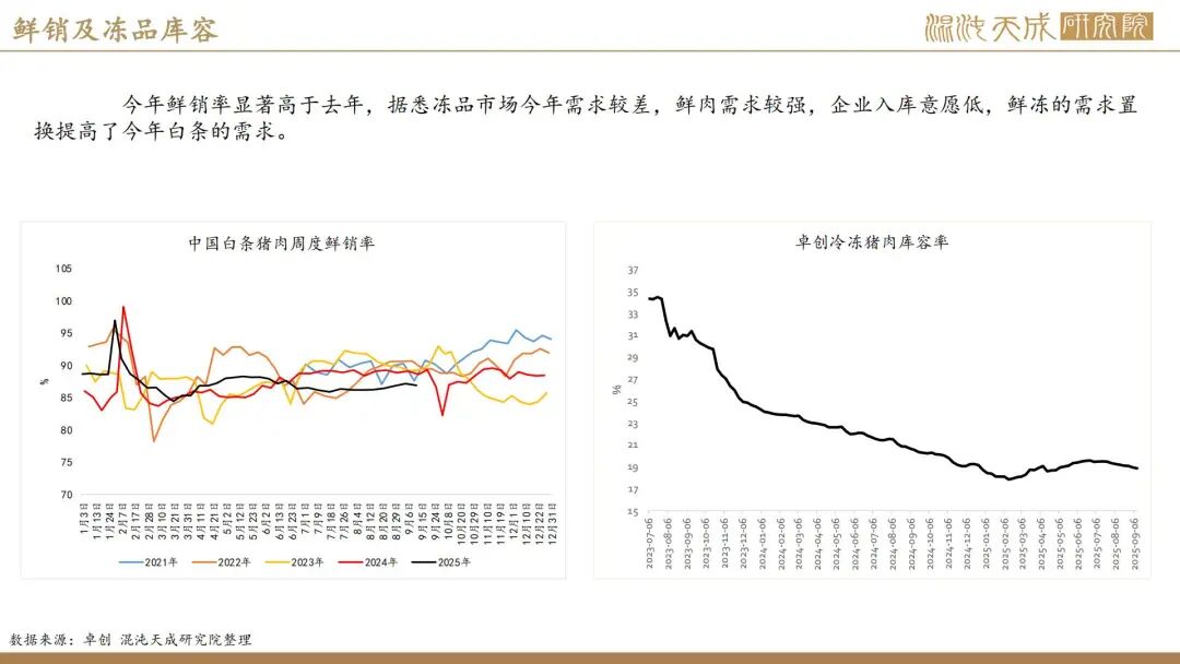 整体来说,今年双节旺季需求彻底落空,主要是以下两个原因:1.宏观层面,消费降级仍在影响市场,数据显示,假期期间国内出游人数达8.88亿人次,较2024年同期增长了16,1%,但人均每日消费仅113.9元,同比下降了13%,消费个体增但消费水平下降的问题延续;2.基本盘来说,今年生猪供应高基数为明牌,4月后的二育普遍预期猪价下跌,从而观望居多,投机需求受基本盘带来的悲观预期影响基本落空。