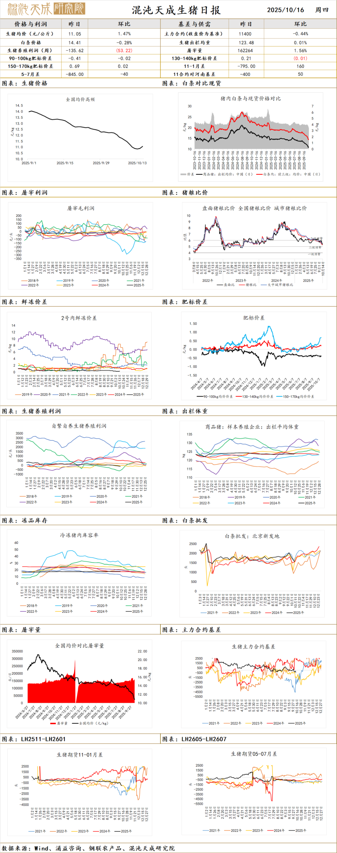 现货方面,昨日现货报价11.05元/kg,环比+1.47%;LH2511主力合约报价11400元/吨,环比-0.44%。