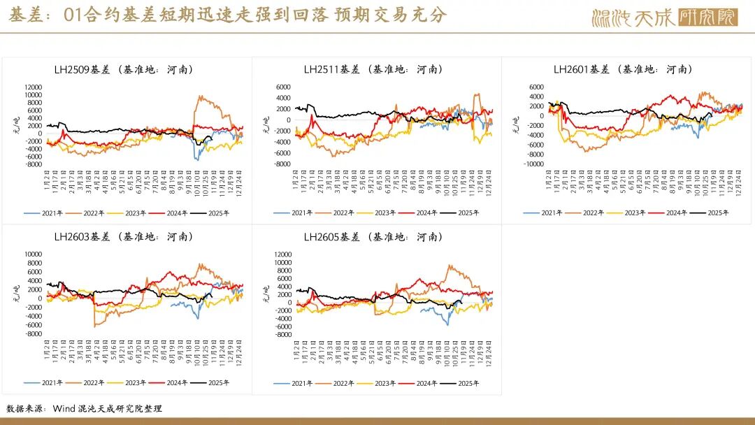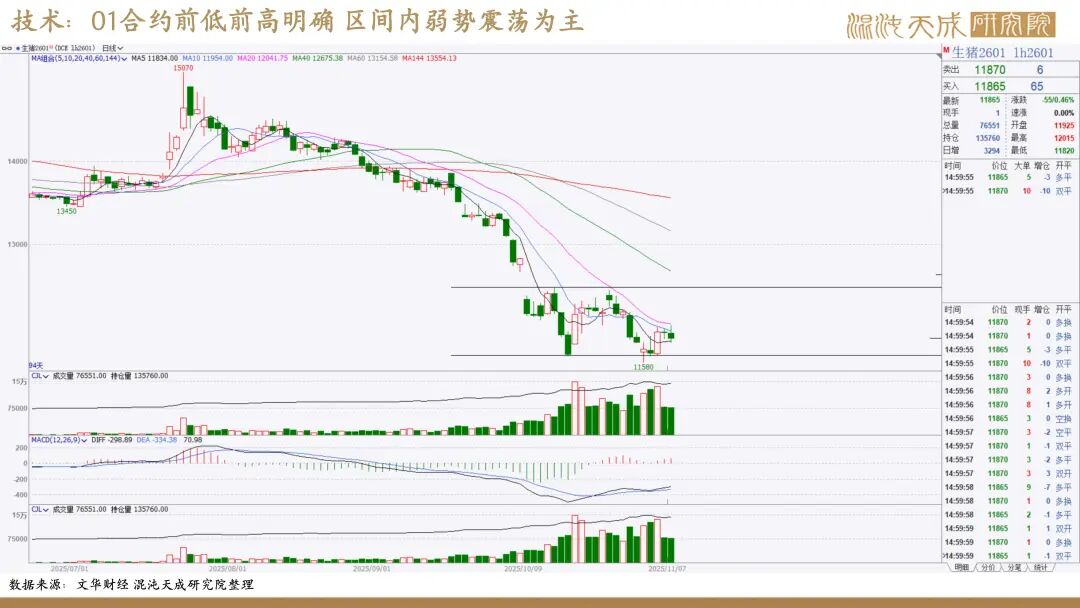 四季度供应压力仍然较大,需警惕年末供应高峰期是否再一次踩踏出栏,建议养殖户逢高出猪避免风险。策略上,本轮现货上涨反弹看待,高点或在13元/kg,低点或回调到11元/kg下方,LH2601合约沽空仍有空间,上方反弹幅度或有限。