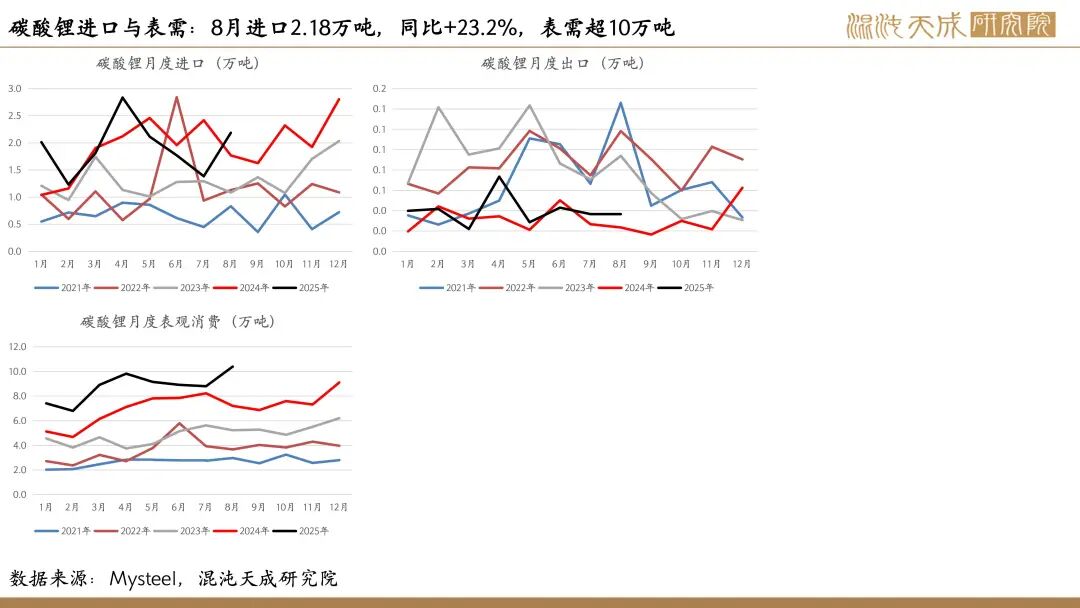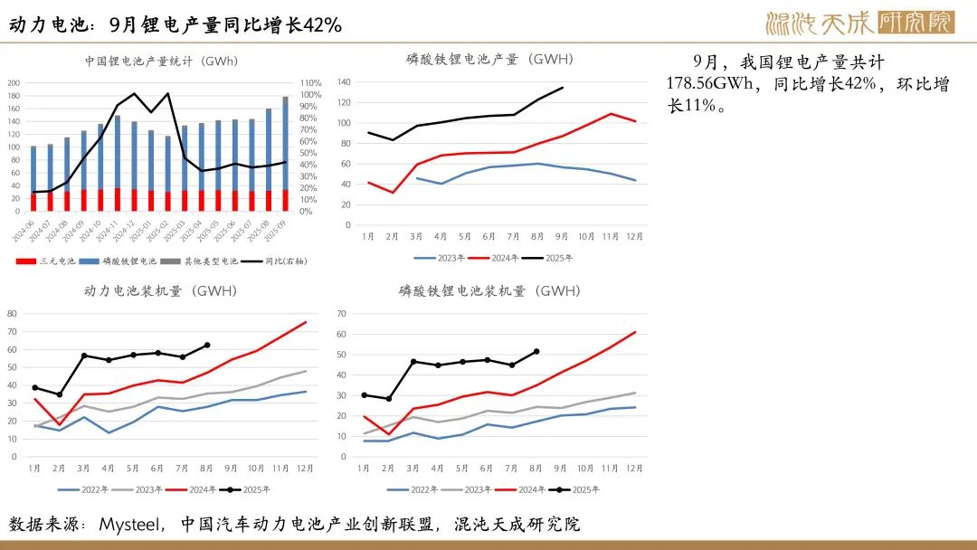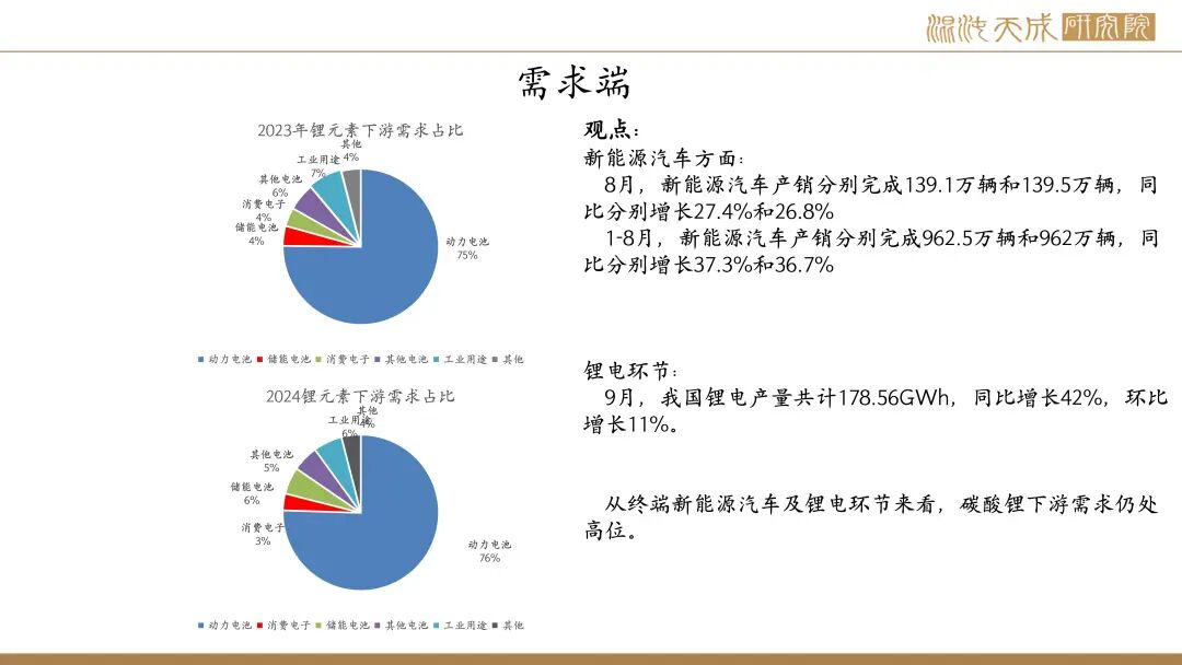 需求:9月,我国锂电产量共计178.56GWh,同比增长42%,环比增长11%。目前头部电池厂储能产线排产爆满,为碳酸锂需求提供有力支撑。