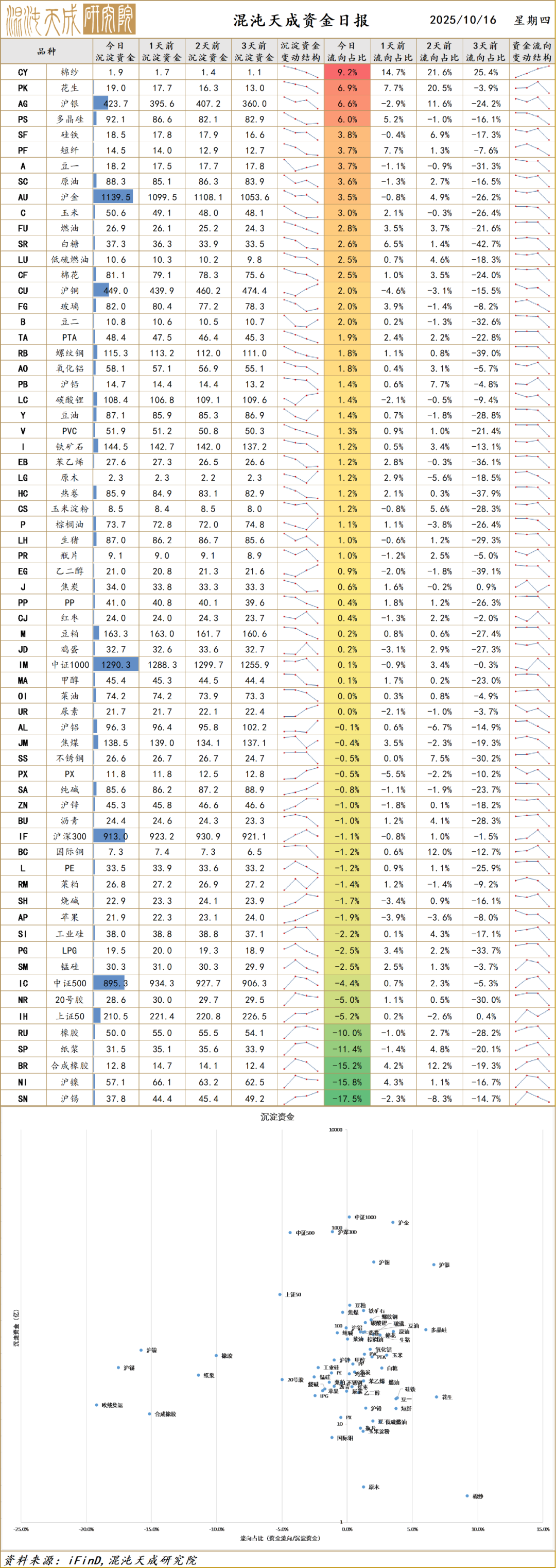 昨日国内社融和CPI数据公布,能源食品以外的核心CPI上涨超预期,M2增幅不及预期但M1持续回升,说明国内信贷仍然偏弱,但企业和居民存款活化有利于股市。国内十一长假数据显示消费恢复一般,整体大环境仍然面临通缩压力。九月出口数据超预期,表明当前净出口仍然有韧性能够弥补内需不足。国内在科技硬件,出海,创新药,资源等行业存在结构性景气。中美贸易战和AI革命也使对相关板块的投入有确定性,接下来主要关注十五五规划和新一轮刺激政策情况。