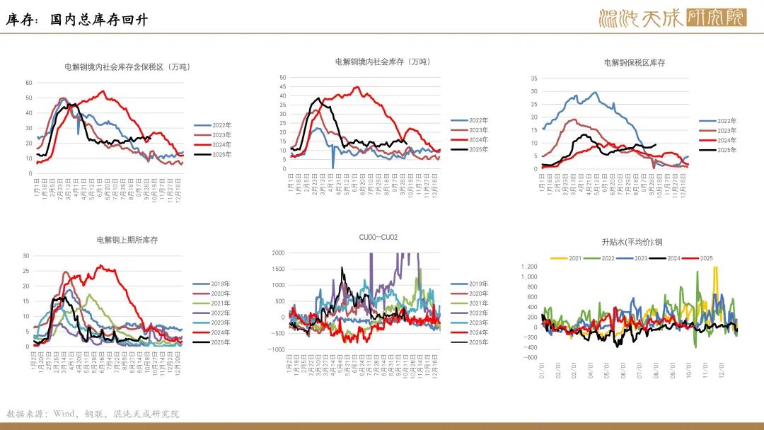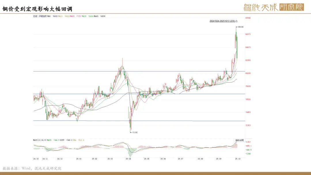 结论:从供应量来看,短线级别从供需缺口走扩逻辑带动下指导盘面较强,但是长期而言,需求是主要变量。从大宏观背景而言,美联储降息后风险尚未完全走低,复苏逻辑还未形成,趋势性上涨逻辑尚不明够明确,且价格走高后易形成实际需求负反馈,上方有一定的阻力位,且短线宏观事件对市场形成一定冲击,宏观共振的动能不足。长期而言供需矛盾仍是主线,这一轮抬升价格中枢后,交易上仍需谨慎对待需求和海外宏观环境变化。周内中美关税等变量,美国政府关门等事件因素以及可能公布的非农和CPI数据都将是宏观主线变盘的节点,在大幅回调后大周期需寻找合适的进场位置。