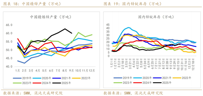 不同于海外,国内精锌供应增量则兑现的十分流畅。随着全球矿端供应的增加,TC持稳上行,冶炼厂冶炼利润增加,生产积极性增加,国内精锌供应持续增长,据SMM数据显示,2025年1-9月精锌产量506.9万吨,同比大增8.9%。
