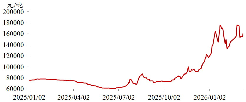 碳酸锂价格的主要影响因素包括供需、库存、宏观、政策、市场情绪等。3月11日,碳酸锂期货2605合约收跌5.14%,至155040元/吨。据MySteel数据,上海钢联优质电池级碳酸锂价格为159900元/吨,工业级碳酸锂价格为156250元/吨。从基本面来看,3月供需双增,下游逢低补库,对高价货源接受程度偏低,预计后市碳酸锂价格在140000~175000元/吨区间宽幅震荡。