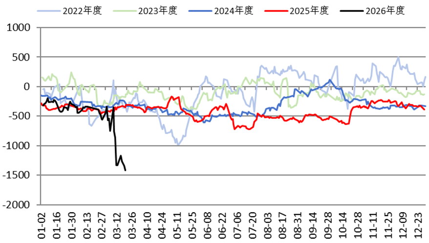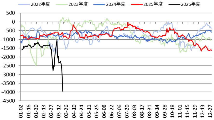 根据隆众资讯统计,截至3月18日,中国聚丙烯港口样本库存量为7.185万吨,较上期下降0.285万吨,降幅为3.82%,港口持续去库。中东地缘冲突使霍尔木兹海峡被封锁,进而导致中东进口货源到港受阻。近期,海外多家能源企业宣布部分能源产品供应合同受不可抗力影响。东南亚国家及韩国货源出口至中国的数量也在下降。