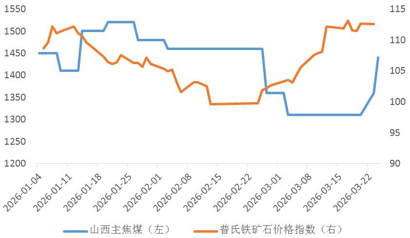 3月25日以来,海外局势缓和导致能源替代逻辑弱化,中东地缘冲突未进一步升级,外交层面释放缓和信号,国际原油价格大幅冲高后快速回落,单日跌幅超5%,打破了此前“油价上涨—煤电成本优势凸显—气转煤需求升温”的传导链条,煤炭替代需求支撑减弱,煤焦价格出现回落。此外,前期借能源替代逻辑推涨的资金集中获利了结,叠加主力合约移仓换月带来的流动性收缩,进一步放大了回调动能。同时,国内基本面也呈现走弱态势。晋陕蒙主产地煤矿开工率维持高位,洗煤厂加工负荷提升,精煤供应充裕,蒙煤通关量持续高位,进口补充进一步缓解了供给压力。需求端钢厂利润微薄,焦炭提涨落地受阻。终端旺季需求兑现不及预期,地产复苏乏力拖累钢材消费,铁水产量回升乏力,焦钢企业以按需补库为主,刚需支撑不足。多因素共振导致煤焦价格持续回调,短期情绪退潮与原油价格下跌是直接导火索,中期国内供需宽松格局将主导价格走势。