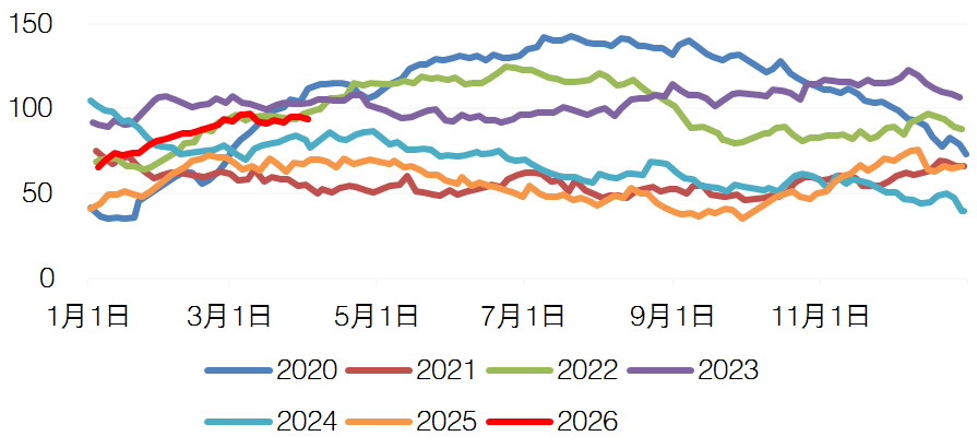 国内乙二醇生产企业以油制乙二醇装置为主、煤制乙二醇装置为辅,总产能超3000万吨/年。4月国内乙二醇供应减量大概率超出市场预期,一体化装置减产、常规检修与煤化工行业集中检修同步开启,行业整体开工率已降至56%。下游聚酯行业开工负荷虽有回落,但下降幅度有限,4月乙二醇市场去库预期较强,为价格带来有力的支撑。
