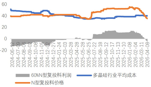 在供过于求的市场背景下,价格下跌的关键支撑参考为最低现金成本区间。4月初,现货均价已跌破单位成本。大全能源发布的公告显示,其2025年第四季度多晶硅单位现金成本为33.95元/千克,单位成本为43.46元/千克;协鑫科技发布的2025年年报显示,2025年颗粒硅平均现金制造成本(含研发)为25.12元/千克,较2024年的33.52元/千克下降25.1%。尽管技术进步与降本增效推动最低现金成本下降,但在供过于求的环境下,这并未带来更多利润,反而进一步打开了价格下跌空间。相关数据显示,截至4月10日,多晶硅N型复投料均价下跌3.42%,至35.25元/千克;N型颗粒硅企稳于35元/千克;N型混包料下跌6.67%,至35元/千克;N型致密料下跌4.17%,至34.5元/千克。