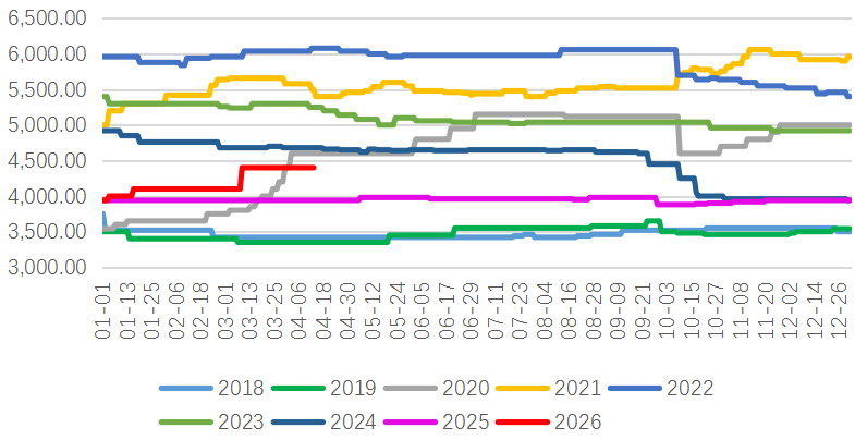 图为国产大豆现货价格(单位:元/吨)