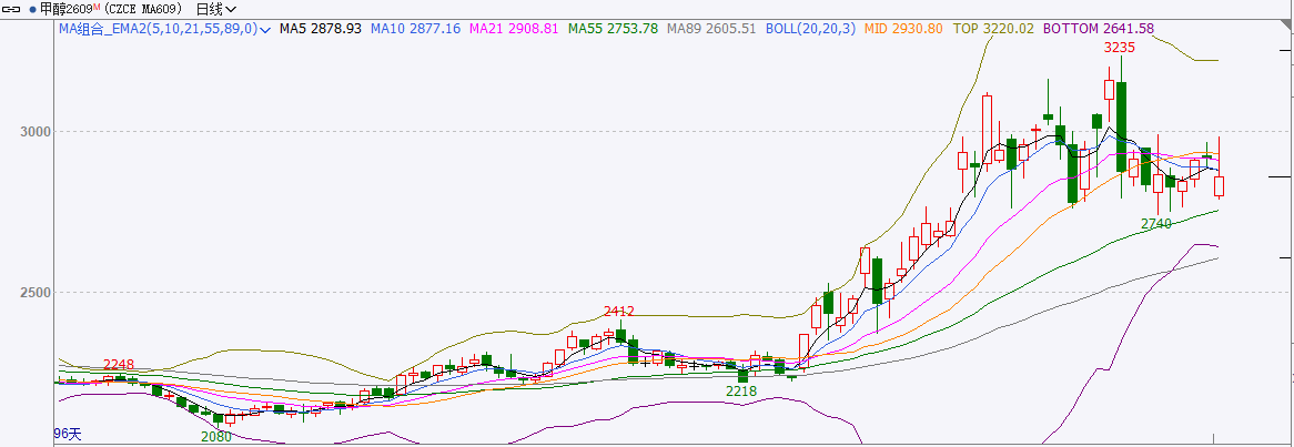 截至前一个交易日收盘,甲醇震荡,日内收阳线。
