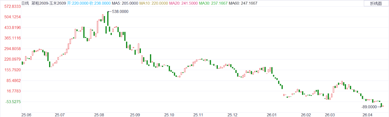 交易逻辑:从季节行规律分析,4月是水产养殖启动期,菜粕需求刚性回升,而玉米处于政策托底震荡期。基本面的为差价回归提供了催化剂。因此,季节性强回归动力时间窗口明确。