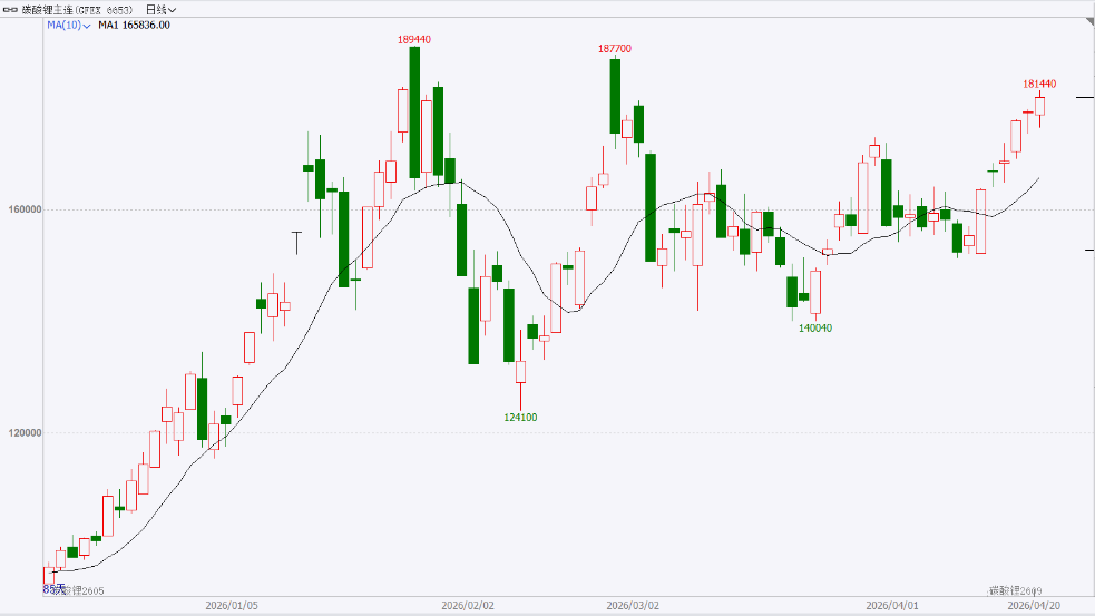 截至前一个交易日收盘,碳酸锂主力合约延续上行,表现转强。