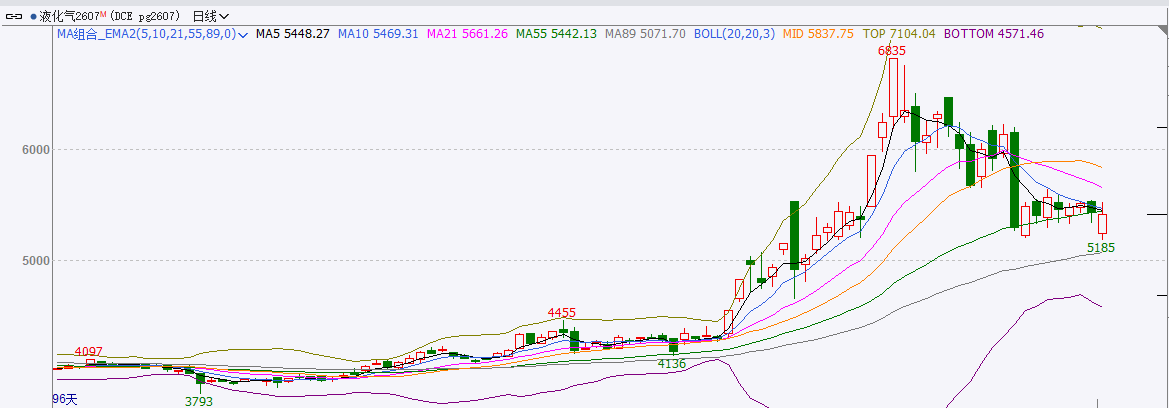 截至前一个交易日收盘,LPG震荡。收阳线。