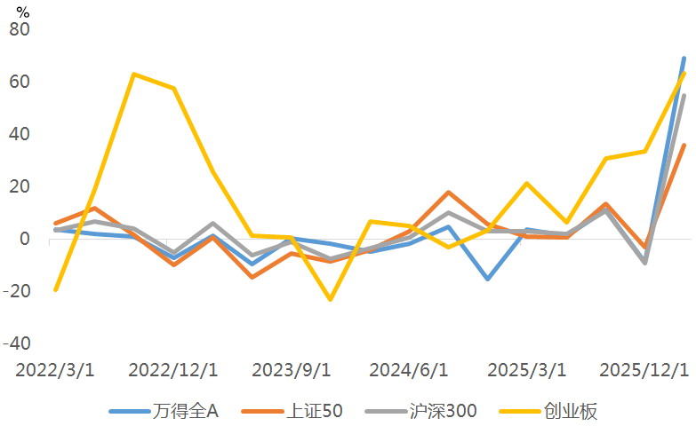 近期中东地缘紧张局势呈阶段性缓和态势,全球金融市场风险偏好显著回升,主要股指均呈现震荡回升格局。A股市场亦出现上行态势,上证综指重新站稳4000点整数关口,同时创业板指数创10年新高。从市场结构看,A股热点板块呈现鲜明的结构性特征,半导体及稀有金属板块持续引领市场上涨,成为带动指数上行的重要力量。与此同时,市场风格呈现“小票强、大票弱”的分化格局。