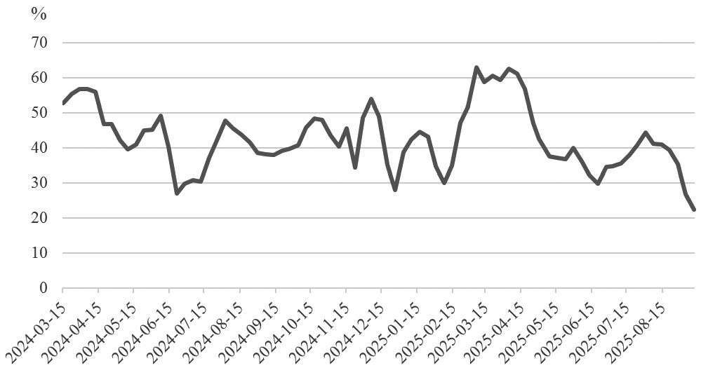 看向需求端,一方面,近期电动自行车电池需求增加,带动铅蓄电池企业开工率回升,铅锭需求同步增长。另一方面,今年下半年电动汽车销售增速放缓,叠加汽车蓄电池替换需求有限,汽车行业需求表现不佳。此外,汽车行业“抢出口”结束,四季度蓄电池出口下降的趋势较为明显。综合来看,汽车蓄电池及出口对需求形成拖累,铅锭需求难以大幅增长,考虑到铅蓄电池企业备库节奏,预计下游采购需求在国庆假期后有所转弱。