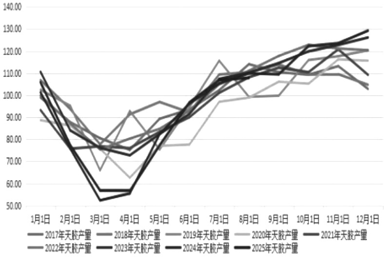 当前,国内外天然橡胶产区均处于割胶旺季,尤其是东南亚主产区,在未受极端气候因素干扰的情况下,供应压力正在稳步增大。