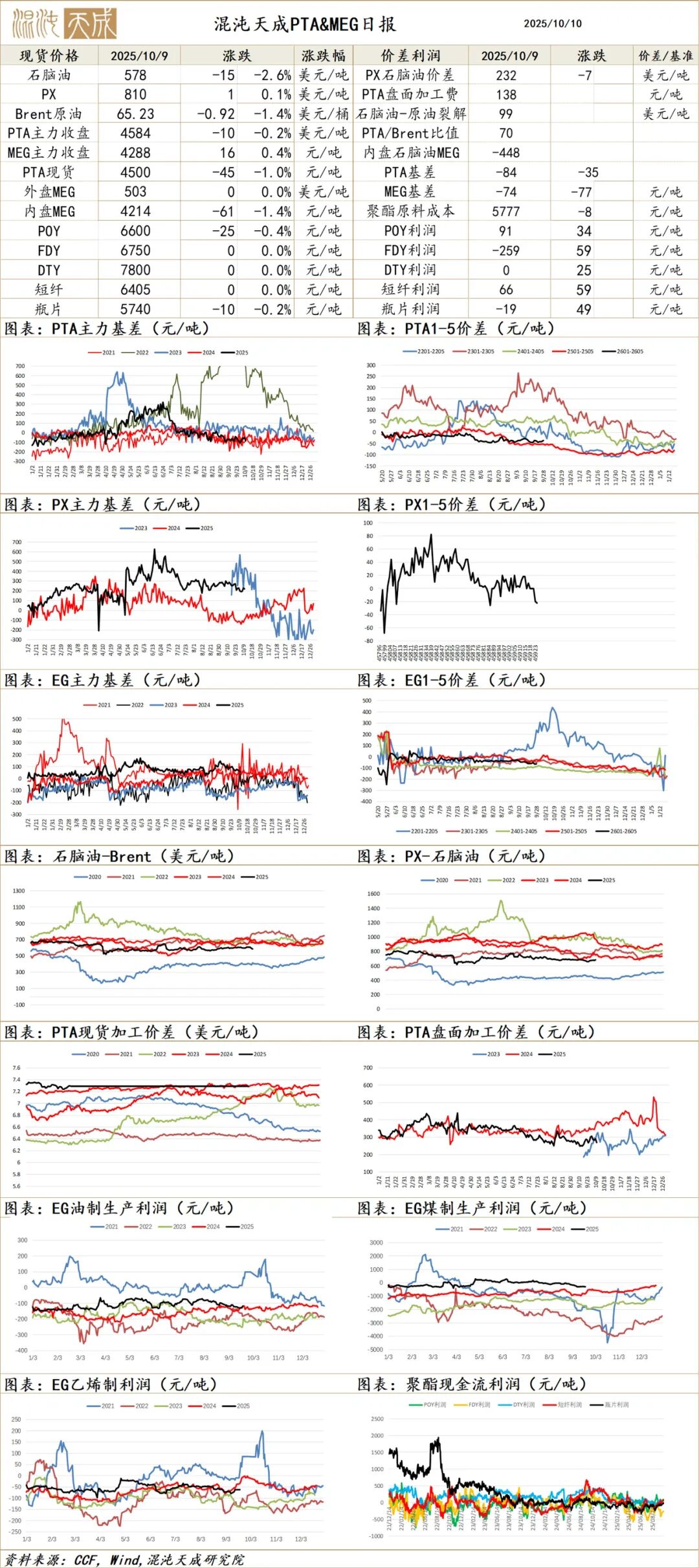 需求端:截止10.9,聚酯开工持稳89%。终端织造开工持稳67.5%,需求拐头向上预计持续至10月,但市场对旺季预期持续下降,当前终端仅维持开工,低利润高库存。