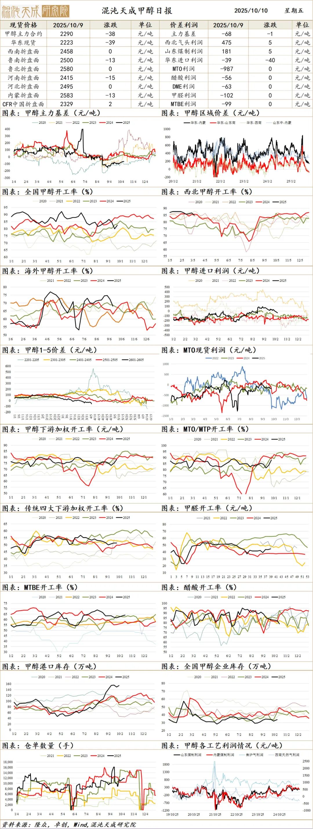 库存端:截至10月9日,隆众数据华东主港库存升至44.3万吨水平,仍偏低。
