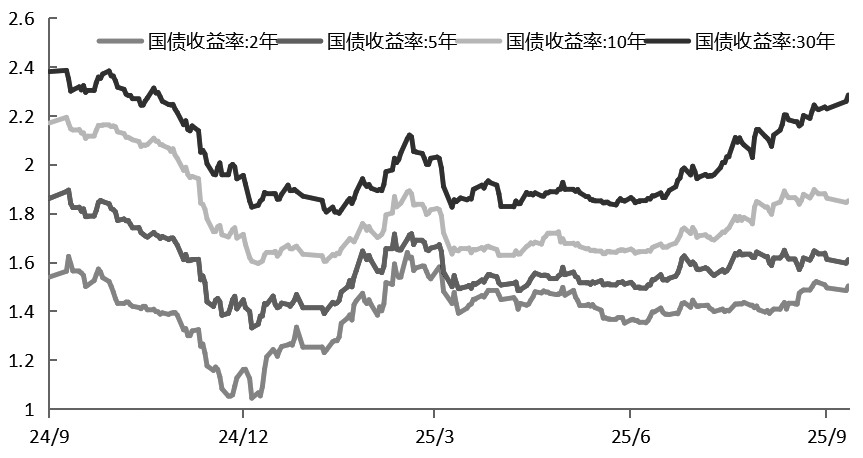 受上周末贸易摩擦升级影响,海外市场情绪恶化,美国科技股及主要板块抛压严重,美股显著下跌,美债收益率回落。10月11日,基金和证券等机构积极买入债券,国内现券收益率大幅下行。10月13日,国债期货普遍高开,TL2512合约涨幅一度超过0.6%,尾盘随着权益市场企稳,国债期货涨幅收窄。
