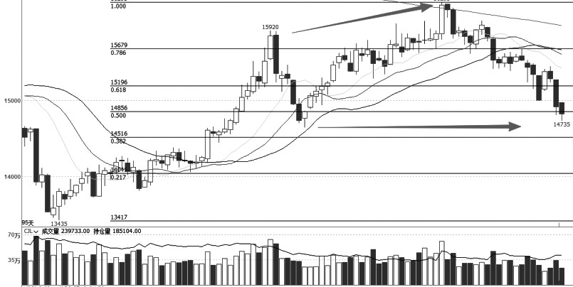 昨日沪银虽以大阴线伴随长上影报收,呈现成交量放大、持仓量减少的特征,但尚未形成明确顶部形态,当前回调更多是短线获利盘了结推动的走势回落,也是价格与均线乖离率过大后的合理回归。预计后市白银或有回调,但整体涨势未改。(中辉期货 李卫东)