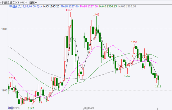 截至前一个交易日收盘,纯碱主力合约震荡下行,日线级别方向处于下跌趋势,后续有望偏弱运行。
