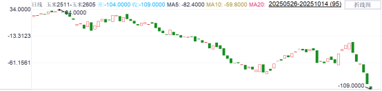 进入10月华北、东北新玉米陆续上市,短期市场供应量压力增加。华北连续阴雨天影响收割进度,阴雨天导致新粮霉变、出现发芽现象增加,东北华北潮粮存储难度加大,这些因素叠加从而加剧了市场悲观情绪,农户和基层贸易商售卖新粮积极,并且现货报价走低。玉米价格下跌,导致收购情绪极度谨慎,下游饲料和淀粉加工厂采用“随用随采”的采购策略,预计短期抛售情绪仍占主导。远期合约而言,随着提振消费政策出台,预计未来市场需求有望逐渐转强。故采取空近月多远月的套利策略。