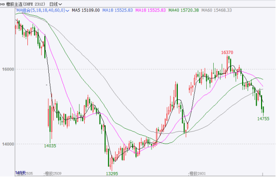 截至前一个交易日收盘,橡胶主力合约偏弱运行,日线级别方向处于下跌趋势,后续有望偏弱运行。