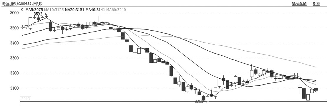 最近,鸡蛋加权价格在前低附近止跌反弹。相较8月的放量增仓下跌,9月成交量和持仓量从高位持续下降,说明中长期做空资金已逐步离场,短期资金观望情绪增强。5日、10日、20日均线形成死叉后向下运行,短期对价格存在一定压制。MACD在零轴下方横向运行,绿柱持稳,空头打压力量有限。KDJ再次黏合,有望形成金叉。综合来看,鸡蛋下跌趋势已经弱化,激进者可背靠前低短线操作。(福能期货 张煜)