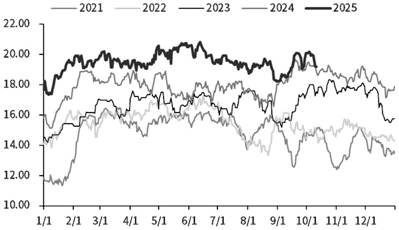 尽管宁夏宝丰、山西天泽等企业于10月初启动检修,尿素日产量从20万吨左右降至接近19万吨的水平,但仍处于近5年同期高位。随着山东晋控日月、阳煤丰喜、兖矿新疆、内蒙古天润等企业常规检修结束,尿素日产量将再度走高。关于后市检修计划,目前仅有新疆玉象、宁夏和宁明确了检修时间,涉及产能分别为30万吨和76万吨,停车时间分别为5天和25天,对日产量的影响比较有限。此外,备受市场关注的山西晋城秋冬差异化管控清单已经公布,但当地企业前期已主动减排,实际影响已提前释放,市场反应比较平淡。