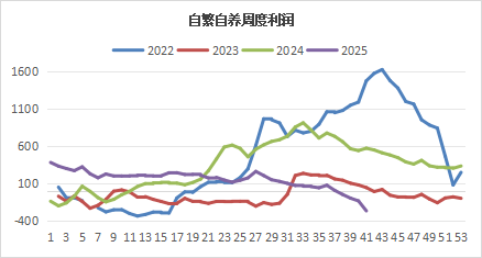 全国生猪周度平均价为5.55元/斤,较之前下跌0.53元/斤,跌幅较为显著。但日度价格的逆势小涨,显示出市场价格的复杂变化。由于阶段性的集中出栏,供过于求导致价格下行。自繁自养和仔猪育肥利润均为负值,降低了补栏积极性。