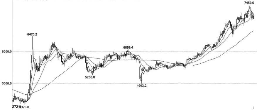 IF加权指数近期最高上涨至4713.4点一线后回落调整。量能方面,价格回调过程中,成交量持稳,持仓量下滑。指标方面,5日均线跟随价格出现调整,中长期均线延续偏强运行,MACD指标快慢线继续在零轴上方一线运行。综合来看,IF加权指数近期出现减仓调整,但20日均线支撑有限,建议继续偏多思路对待。