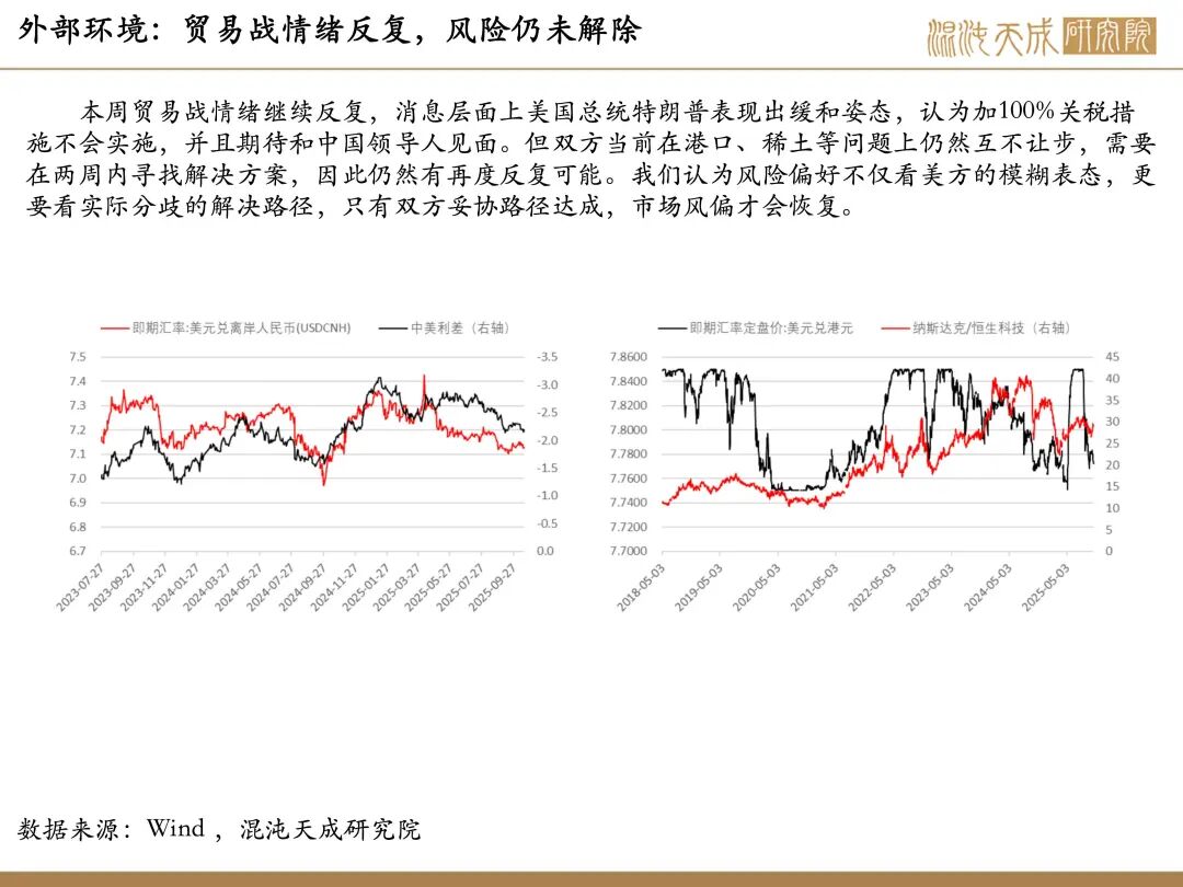 外部环境:美国政府言论为贸易战降温,但双方在核心分歧上仍然互不让步,因此在见到双方妥协路径前贸易战走势仍然充满不确定性,压制市场风险偏好。