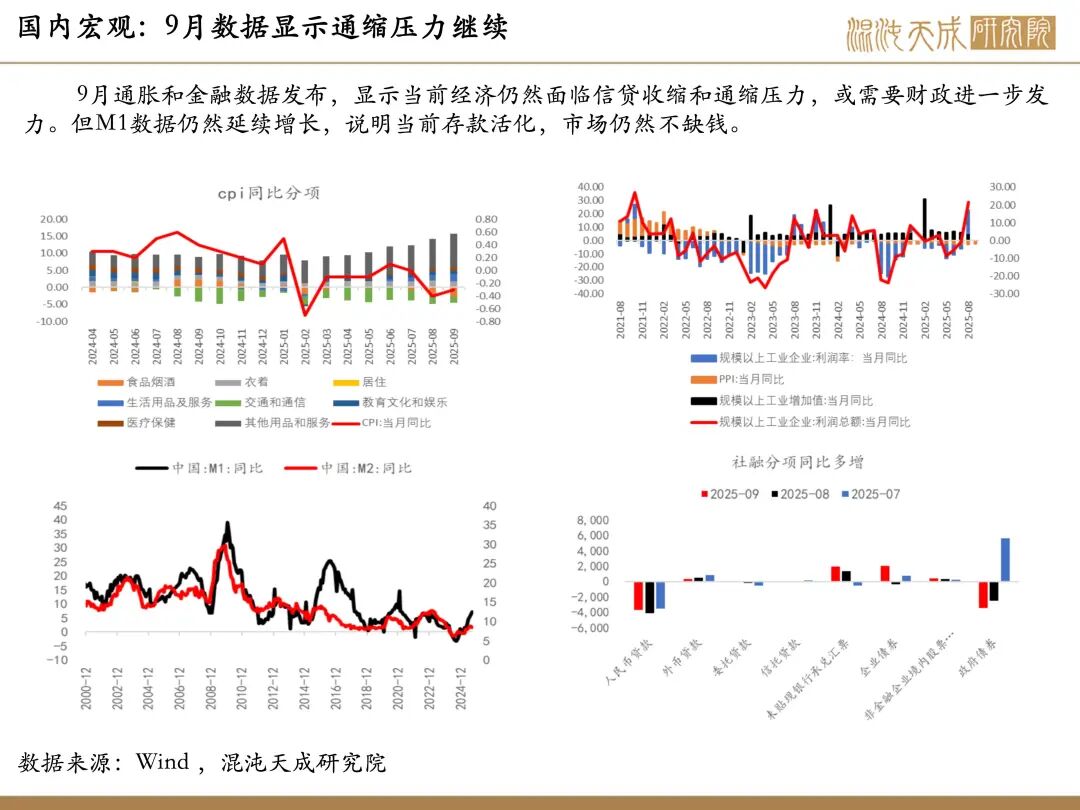 基本面:9月金融和通胀数据显示当前国内仍面临信贷收缩和通缩压力,离全面复苏仍有距离,需要政策端进一步发力支持,关注十五五规划。