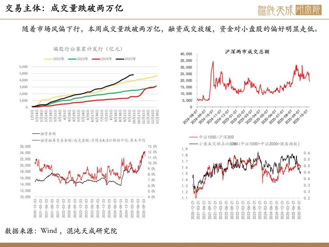资金面:M1继续上升显示存款活化,市场并不缺钱。无风险利率或已见顶,目前决定市场资金面的是风险偏好,本周避险情绪下成交量跌破两万亿。