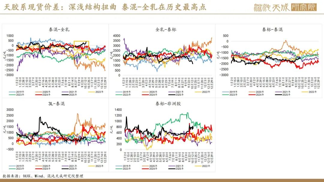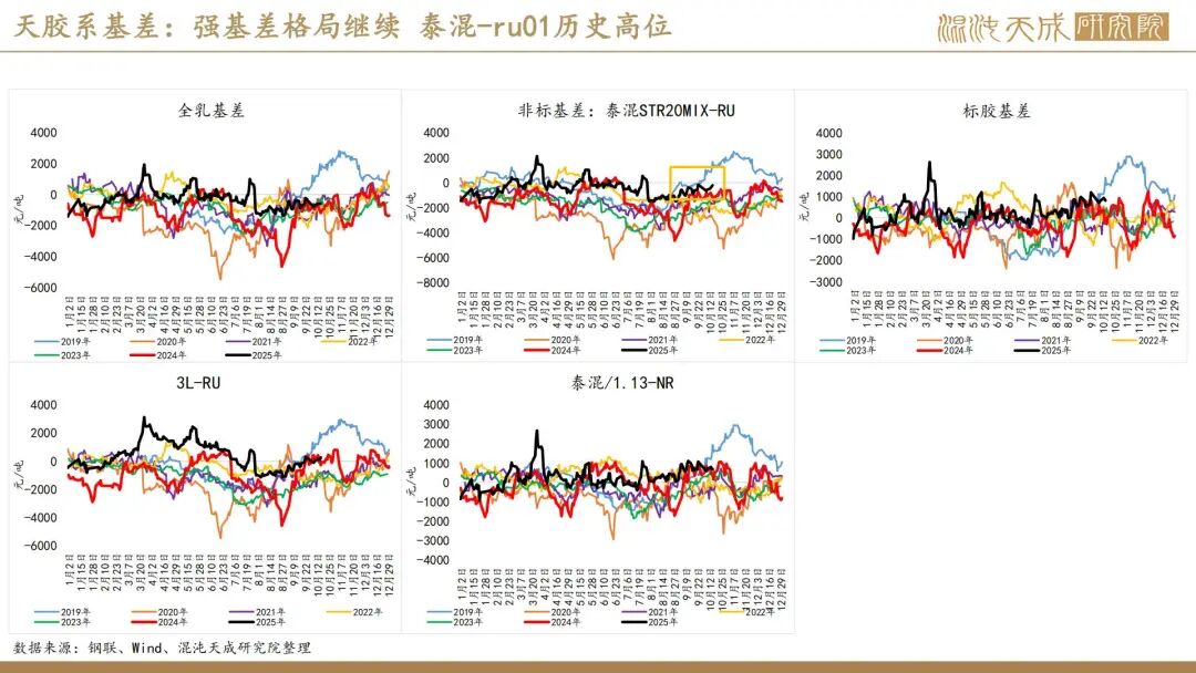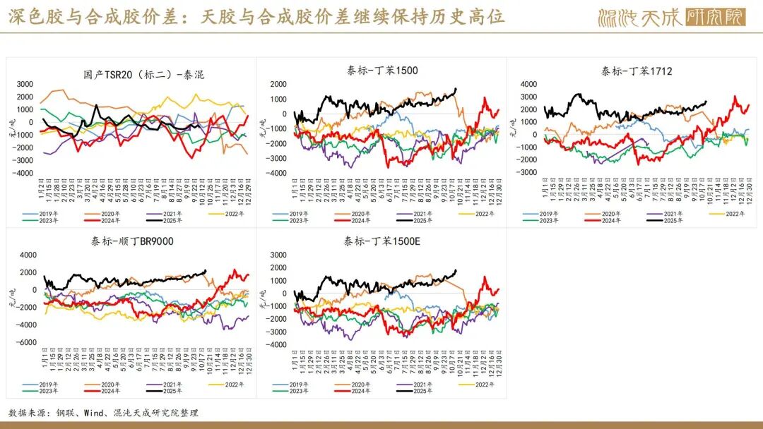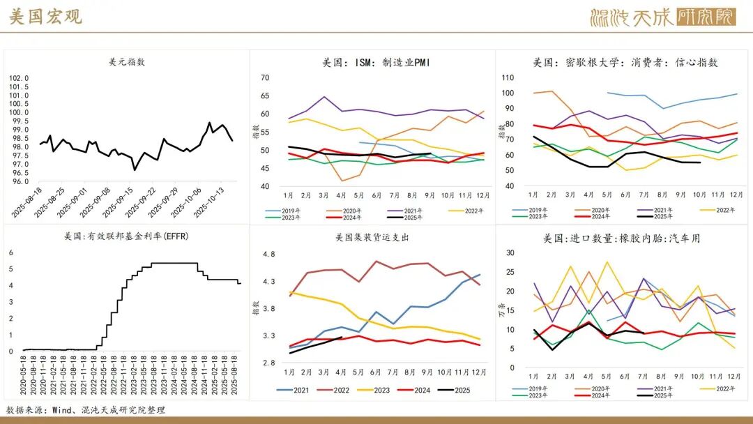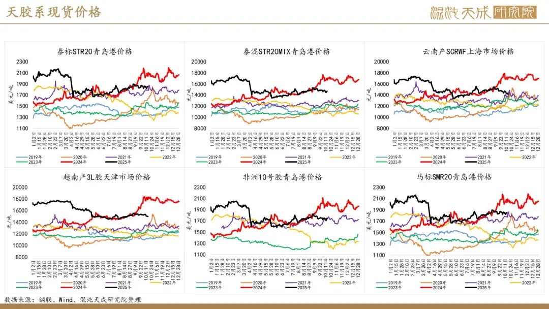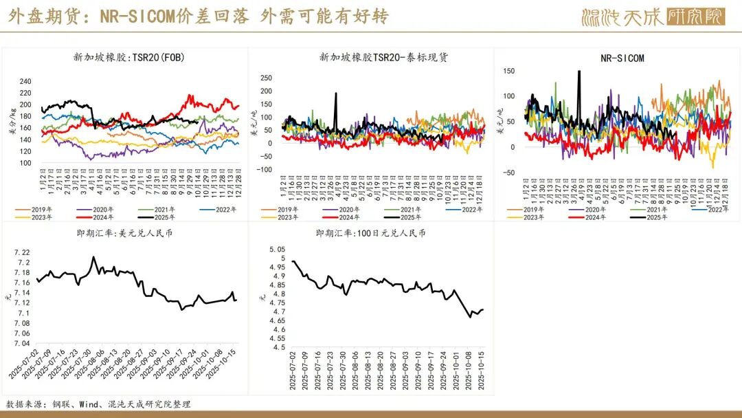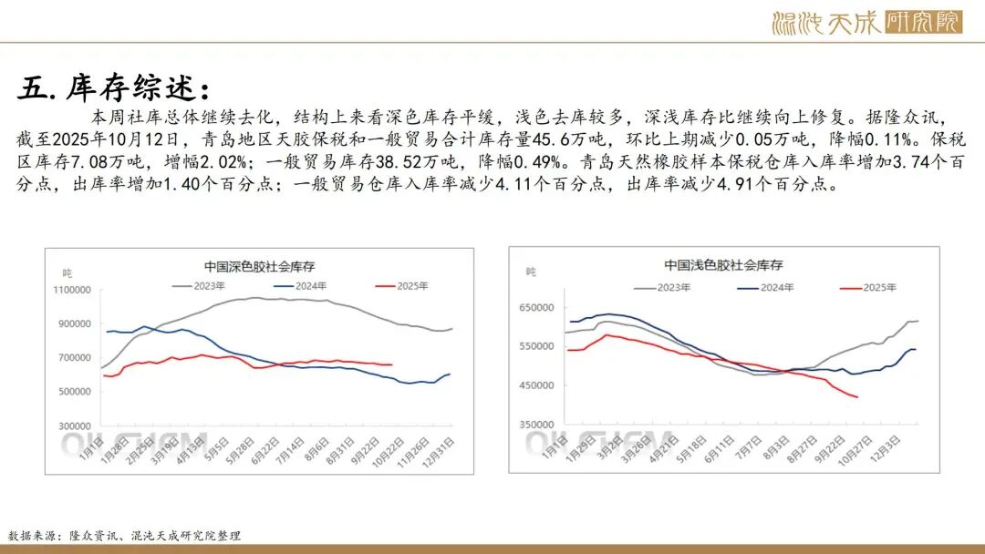 国内进口方面,9月天胶与合成胶进口总和同比大幅增长,虽其中合成占比可能较多,但天胶进口缩量的预期也有所反转。据中国海关总署10月13日公布的数据显示,2025年9月中国进口天然及合成橡胶合计74.2万吨,环比增加7.8万吨,增幅11.7%。同比增加12.8万吨,增幅20.8%。今年1-9月,中国进口天然及合成橡胶(含胶乳)共计611.5万吨,同比增加98.6万吨,增幅19.2%。