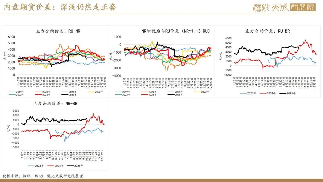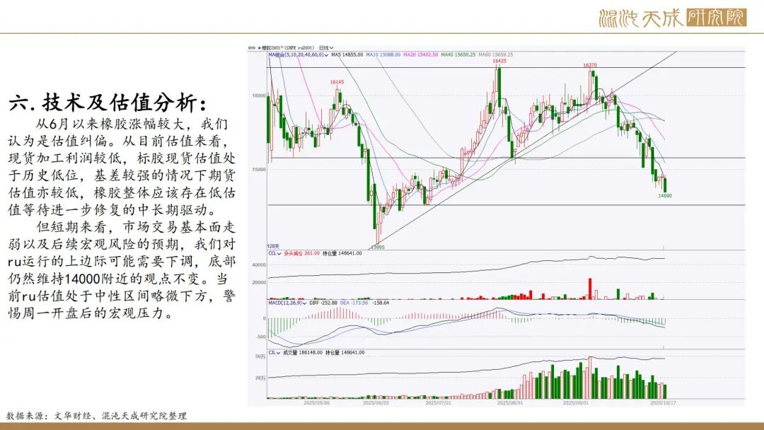 总的来说,三季度橡胶基本面和宏观预期偏强的状况出现明显转弱的迹象,产区天气好转下上量预期明确,而自4月以来半年的风平浪静后特朗普再次掀起关税加征的风波,胶价或受此冲击下偏弱运行。从策略和估值角度来说,本轮基本面转弱的情况已经在节前计价部分,而宏观风险应低于4月全球资本市场都未做任何准备的情况,部分交易员已再次押注“TACO”,我们认为短期橡胶利空居多,而前低14000元/吨位置的底部构筑明确,本轮下跌的空间相对可以衡量,策略上建议区间交易为主,单边驱动受限。