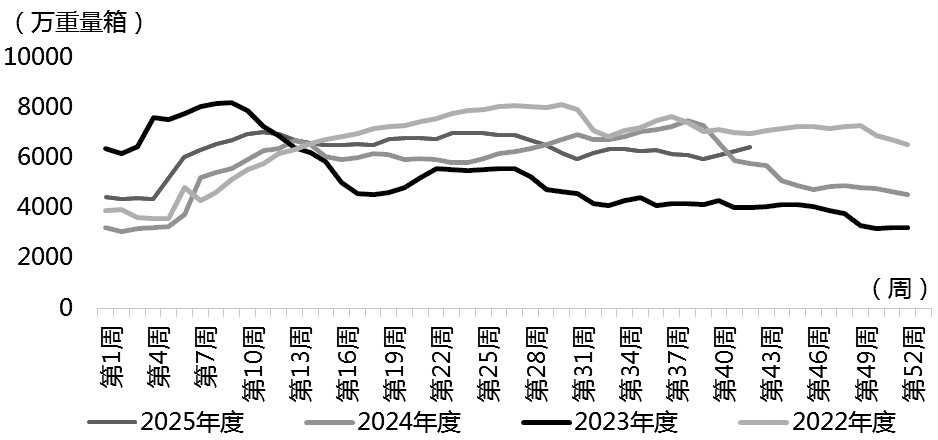 据统计,截至10月15日,全国深加工样本企业订单天数均值为10.4天,环比下降5.5%,同比下跌21.2%,处于2019年以来同期最低水平。