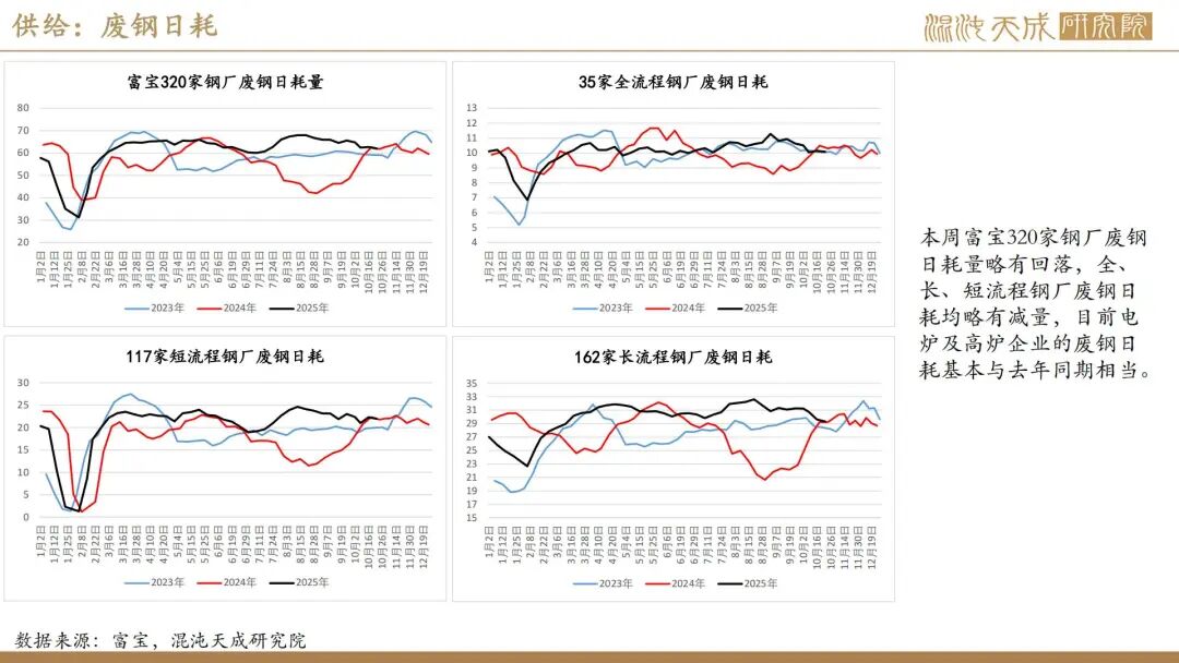 利润&成本:钢厂盈利率大幅下降至47.62%,但本周钢联高炉、电炉、热卷、冷轧即期利润均变动不大,富宝数据显示当前华东长流程含税成本在3172元/吨,电炉谷电成本在3163元/吨,平电成本在3293元/吨。