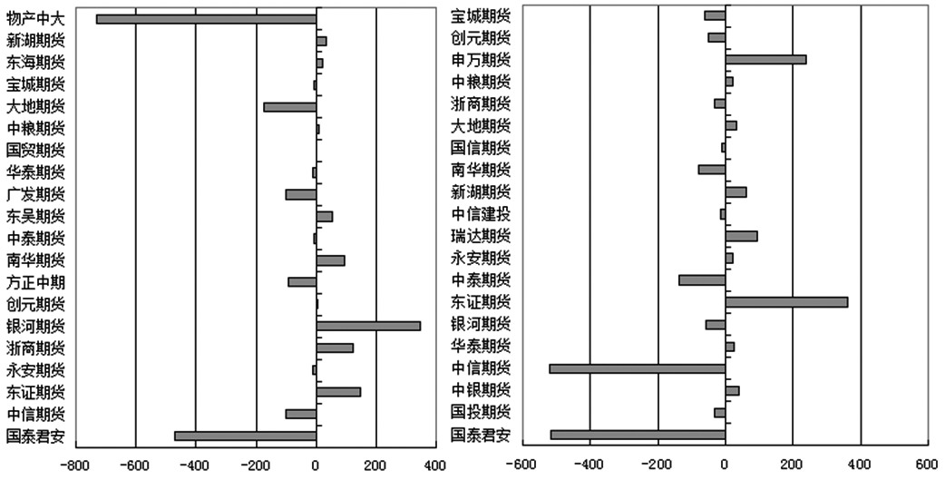空头前20席位中,减持空单的有11家。其中,减持空单数量超过500手的有2家,分别为国泰君安期货席位和中信期货席位,分别大幅减少516手和519手。另外,减持空单数量介于100手至500手之间的有1家,为中泰期货席位,减少139手。剩余8家均减持不足100手。