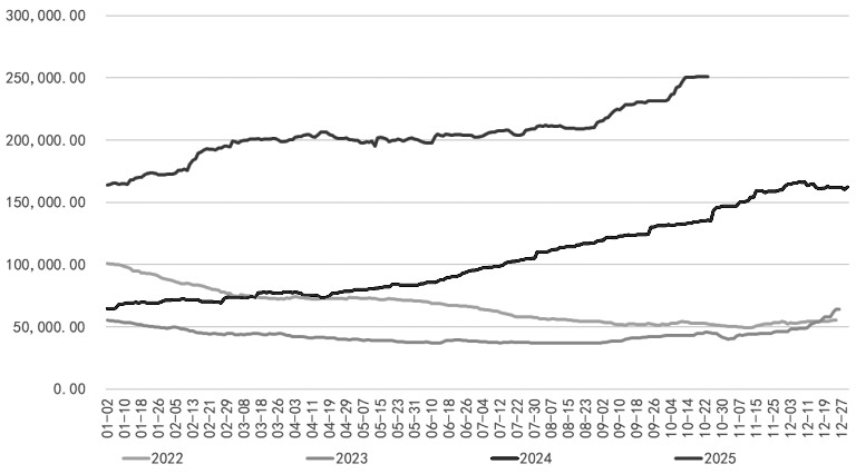 2025年1—8月,全球精炼镍产量达到254.94万吨,同比增长30.16万吨;同期消费量仅为224.43万吨,供应过剩量高达30.51万吨,远超市场预期。这一数据清晰反映出当前镍市供需失衡的严峻局面。