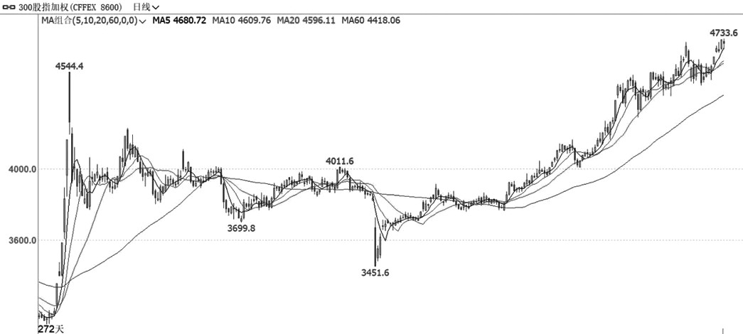 IF加权指数近期震荡走强并创年内新高。量能方面,成交量和持仓量均保持平稳。指标方面,均线系统再次转入多头排列,MACD指标快慢线在零轴上方黏合在一起运行。综合来看,建议继续偏多思路对待。