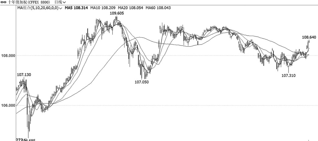 十债加权指数近期回落至20日均线附近再度企稳走强,且向上突破60日均线压力。量能方面,价格反弹过程中,成交量变化不大,持仓量稳步增长。指标方面,短期均线跟随价格走强,60日均线转入水平走势,MACD指标快慢线跟随价格走强。综合来看,十债加权指数近期延续反弹并创出新高,建议偏多思路对待。(刘培洋 期货投资咨询从业证书编号Z0011155)