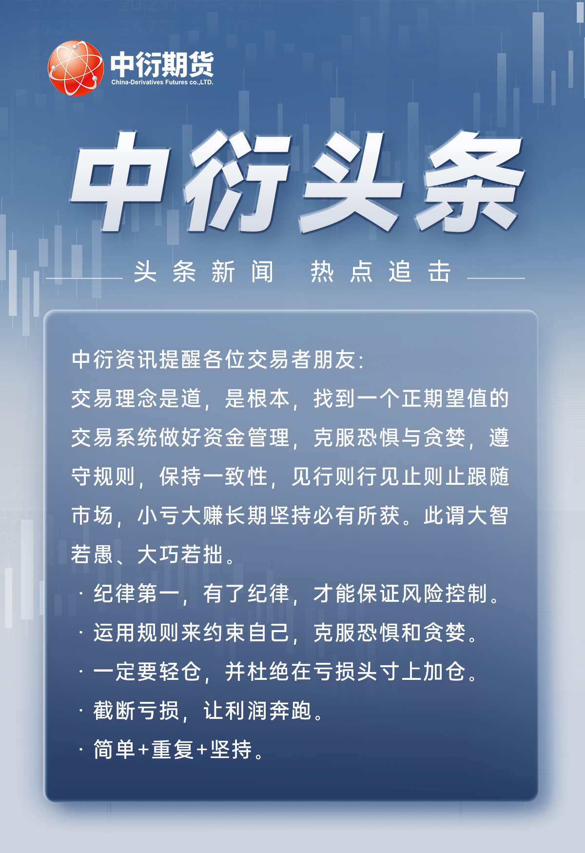 中衍期货有限公司具有中国证监会核准的期货投资咨询业务资格(批文号:证监许可[2012]1525号)。本公司文件/图片/视频的观点和信息仅供中衍期货风险承受能力合适的签约客户参考。本文件/图片/视频难以设置访问权限,若给您造成不便,敬请谅解。本公司不会因为关注、收到或阅读本文件/图片/视频内容而视其为客户;本文件/图片/视频不构成具体业务或产品的推介,亦不应被视为相应期货和衍生品的交易建议,不应凭借本文件/图片/视频进行具体操作。请您根据自身的风险承受能力自行做出交易决定并自主承担交易风险。