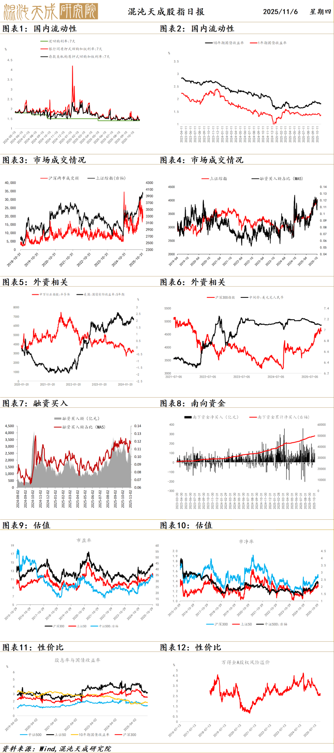 三季报接近公布完毕,地产消费等板块仍然深陷困境,短期看不到反转迹象。科技板块虽然增长亮眼,但前期大涨的光模块等板块业绩增速不及预期,因此导致了相关板块回调。但国家政策仍在持续支持算力芯片等相关产业的国产替代,预计科技板块行情并未结束,需等待下一步催化。新能源则受益于反内卷和储能爆发,市场仍然是在科技资源和红利之间进行哑铃轮动,消费地产等传统行业相对弱势。