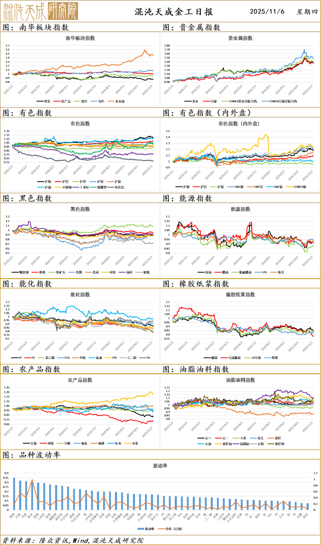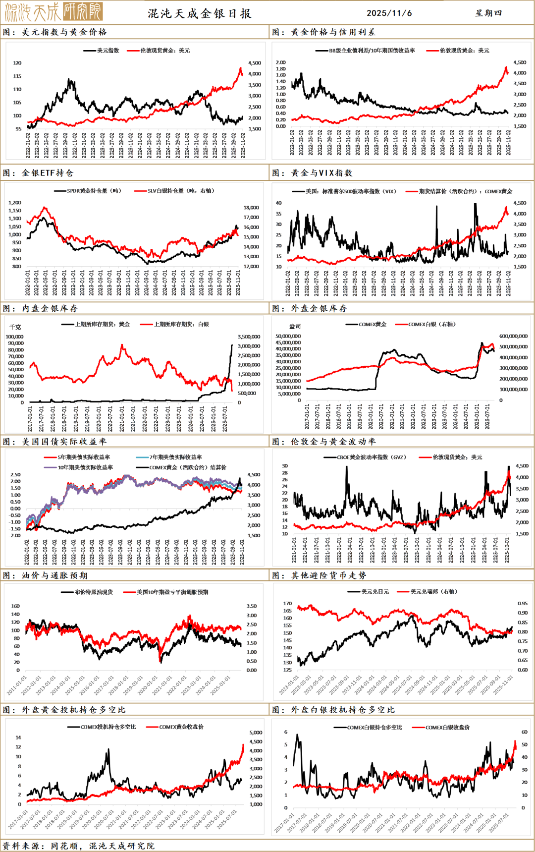 美国民主党击败共和党候选人,赢得了弗吉尼亚州和新泽西州州长选举,特朗普将此归咎于政府停摆;政府关门仍在持续,最新的消息面:第13次表决仍未通过,美政府 “停摆” 继续,此次关门受到“两党关系”的催化,仍具备较大的风险。近期的航空风险成为市场预估促使美国政府开门的主要因素,而政府开门预期一定程度上也是对于市场流动性的正向推动;但是近期关于最高法院对于特朗普关税政策的审议和州选举上的失利都是近期的潜在风险上行驱动,贵金属在流动性风险未进一步发酵后出现了反弹。