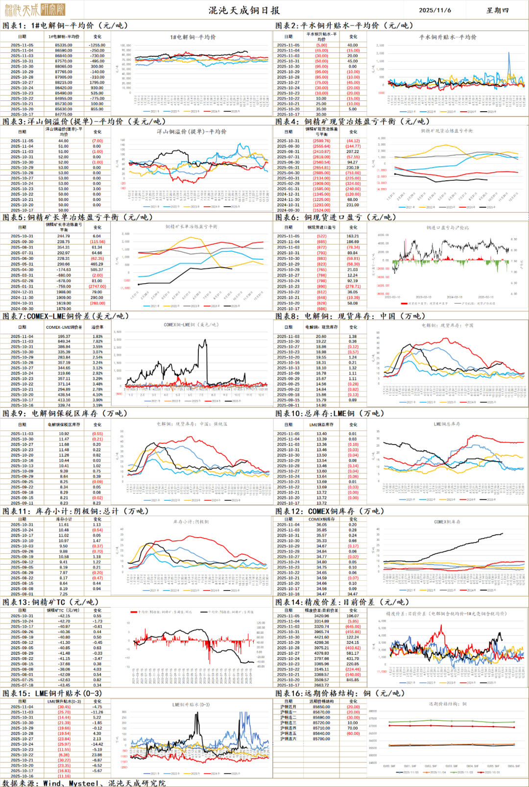 总体来说,美国政府停摆时长超预期,流动性风险隐隐抬头,12月降息预期降温,美元指数上行,基本金属承压,美国10月ADP就业人数 4.2万人高于预期,短期衰退担忧减弱。国内锌11月冶炼厂排产环比继续增加,库存继续累库,四季度过剩压力仍存,内外比价走扩至出口窗口打开。海外lme新注册仓单增加,库存开始累库,lme锌价开始走弱,国内出口要形成一定量级才能缓解海外供应偏紧的现状(部分企业出口流畅不熟悉+可海外交割锌锭流通少),内外比价修复会是一个较长周期的叙事,短期TC下行+出口窗口开启,沪锌价格存阶段性支撑。